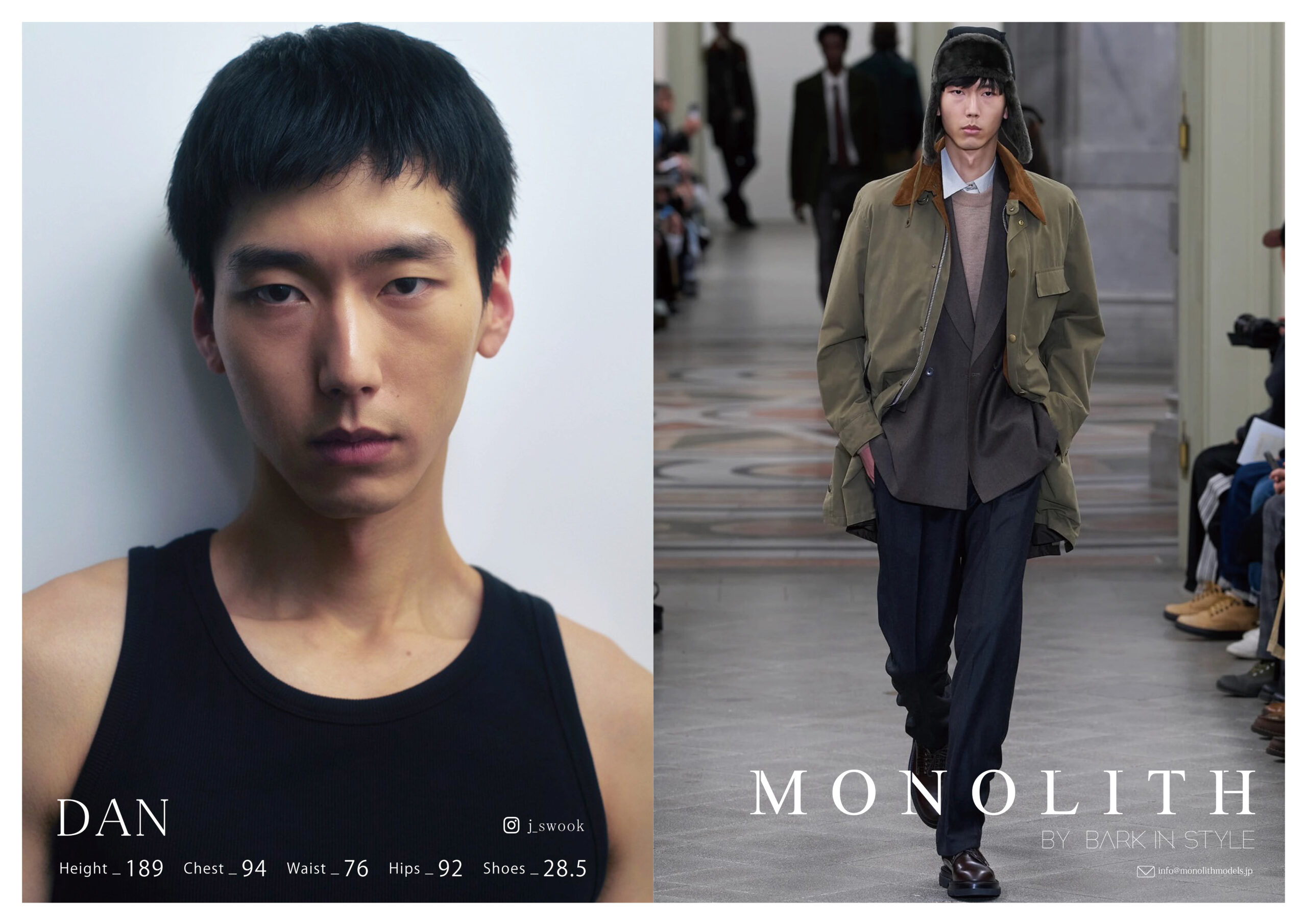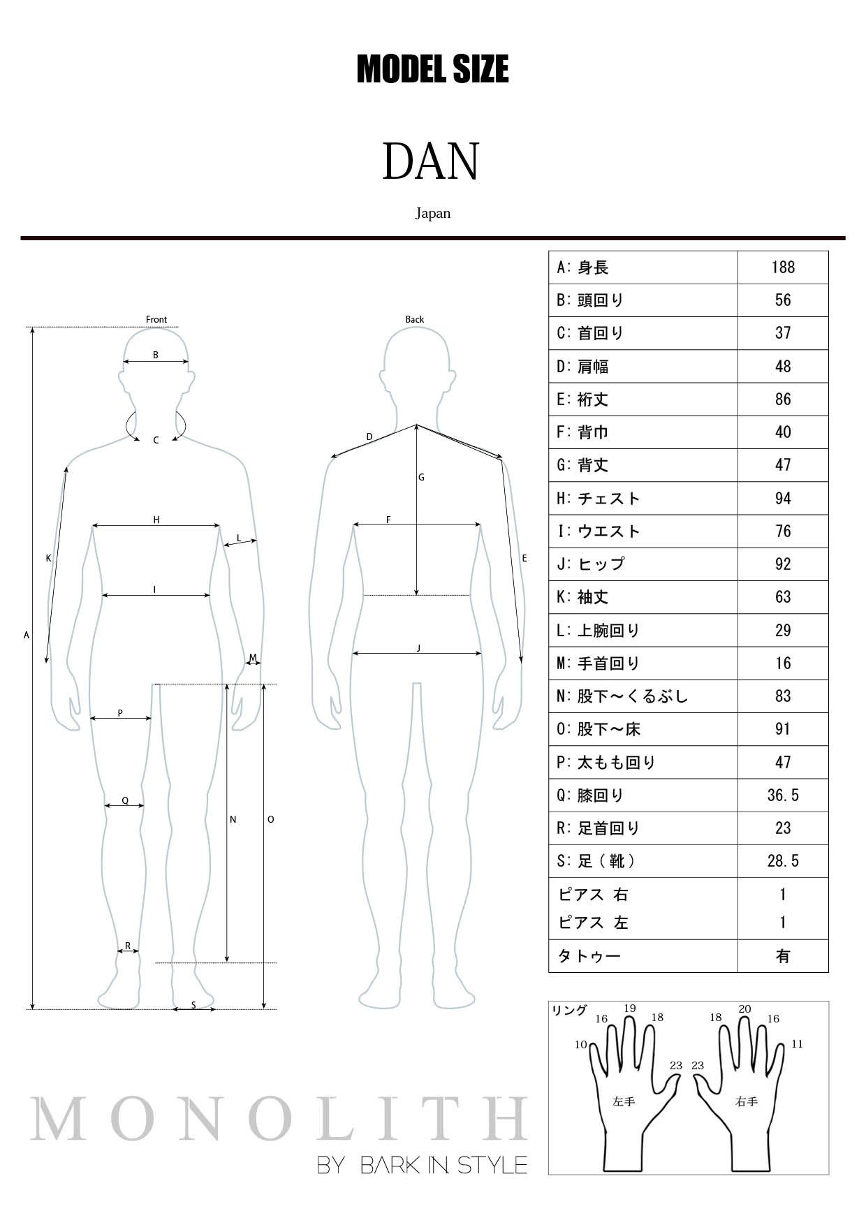 ALL WomenMen DanHeight:189cmChest:94cmWaist:76cmHip:92cmShoes:28.5cmCompositeDetail Offer Back to Men